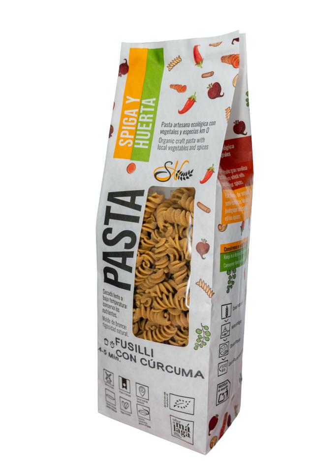 De la fusión de nuestra sémola de trigo duro y la cúrcuma malagueña surge una pasta muy «exótica». Disfruta de las cualidades nutricionales de la cúrcuma y de su sabor de manera sencilla. Cúrcuma y cereal km0, desde las campiñas y huertas andaluzas a tu plato. Utiliza el fusilli para platos de pasta fría (ensaladas). Acompáñalos con un salteados de verduras de temporada y hongos, con quesos, mantequillas, salsas cremosas elaboradas a base de nata o leche de coco, etc. No olvides añadir un poco de pimienta negra molida para potenciar el sabor y las cualidades de la cúrcuma.